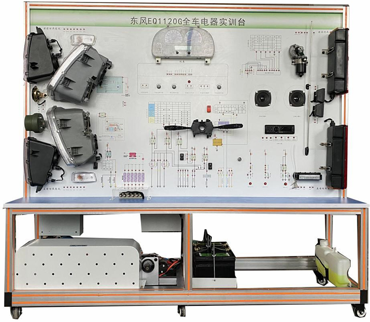 天锦全车电器实训台采用全新东风天锦EQ1120GA2柴油机整车电器实物为基础,充分展示汽车仪表系统、灯光系统、雨刮系统、喇叭系统、发动机电器系统、起动系统和充电系统等汽车电器各系统的组成结构和工作过程。适用于学校对整车电器理论和维修实训的教学需要。
