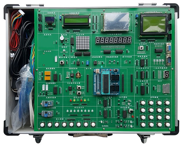 2、一个实验主机底板,可以配51、AVR、PIC、MSP430、ARM、STM32等多种CPU核心板(根据客户需求配置),从而实现对各种CPU芯片的支持扩展,最终实现支持常见主流MCU达几十种之多。出厂标配STC89C52核心板。