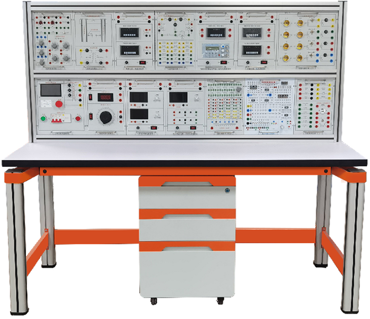 实验平台由实验桌、实验台架、存储柜、实验挂箱组件、配件等组成。
