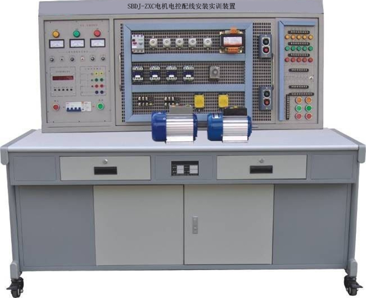 电机电控配线安装实训设备综合了大中专院校电力拖动工厂电气控制技术继电接触控制等课程教学大纲的要求而研发。采用网孔板结构,功能和性能优越,符合职业教育改革和发展,其外形美观、结构合理、牢固、耐用,配备多种常用电机及配套工作电源。实训内容丰富,实训方法接近工业现场,实训方法灵活、增加元器件即可增加实训项目,可扩展性强。装置设置多重科学安全保护措施,确保设备和操作者人身安全,特别适用于各院校现阶段实训设备的更新改造,迅速开设实训课程的理想设备。