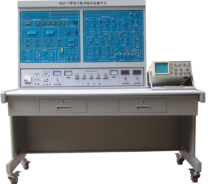 电子技术综合实训设备是根据职业院校培训教材《模拟电子技术》、《数字电子技术》等课程的教学实训要求开发设计的。设备采用开放式的平台式设计模式,提供了外插式电阻、电容、二极管、三极管、电位器、集成块等电子器件及数字式电压、电流测量仪表,适用于各职业院校、中等专业学校、技工院校等进行数电、模电等课程的教学实训。