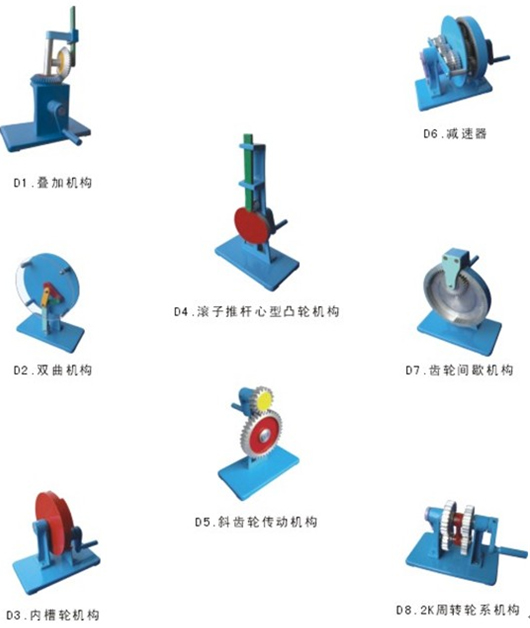 1.要用于机械原理(机械设计基础)课程开设"机构运动简图测绘及分析实验";此外,产品中的所有模型都可以单独用于机械原理(机械设计基础)的课堂教学,机械创新设计课程中的机构创新部分的案例教学;