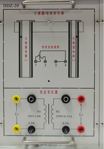 提供铁芯变压器一只(50VA、36V/220V)、电流插座等,原、副边均设有保险丝及电流插座,方便测试并能可靠保护防止变压器损坏。
