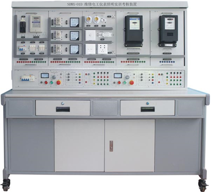 “维修电工仪表照明实训考核装置“是按照劳动和社会保障部颁发的“工人等级标准”和“职业技能鉴定”的要求而设计的,该装置集理论、实际操作和考核鉴定为一体的多功能设备。它不仅能作为电工仪表和照明电路的操作实训装置。而且也可用于劳动职业技能鉴定部门、大中专院校、职校、技校对初、中、高级维修电工技能考核的理想设备。