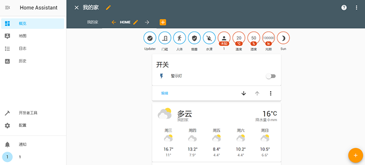 图:智能家居课程案例,使用自动化智能家居平台Home Assistant,对安装好的感知层设备进行数据的浏览和各种自动或手动的执行操作。