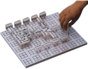 电子技术实训台具有较完善的安全保护措施,较齐全的功能(详见实训台结构简介)。实训桌中央配有通用九孔万能插件板,九孔万能插件板主体由ABS注塑而成,表面布有九孔成一组相互联通的插孔,九孔万能插件板内部内嵌126组铜质九孔一体成型嵌件。实训中的弱电模块必须以独立封装的透明元件盒为单一模块,元件盒统一都能配合九孔万能插件板像搭积木一样的形式自由搭建组合电路,元件盒盒体透明,内装元件直观性好,盒盖印刷电路图防刮耐磨,符号美观清晰。元件盒盒体与盒盖采用较科学的压卡式结构,维修拆装方便。元器件放置在实训桌下边储存柜内,大大提高了管理水平,规划化程度,大大减轻了教师实训准备工作。