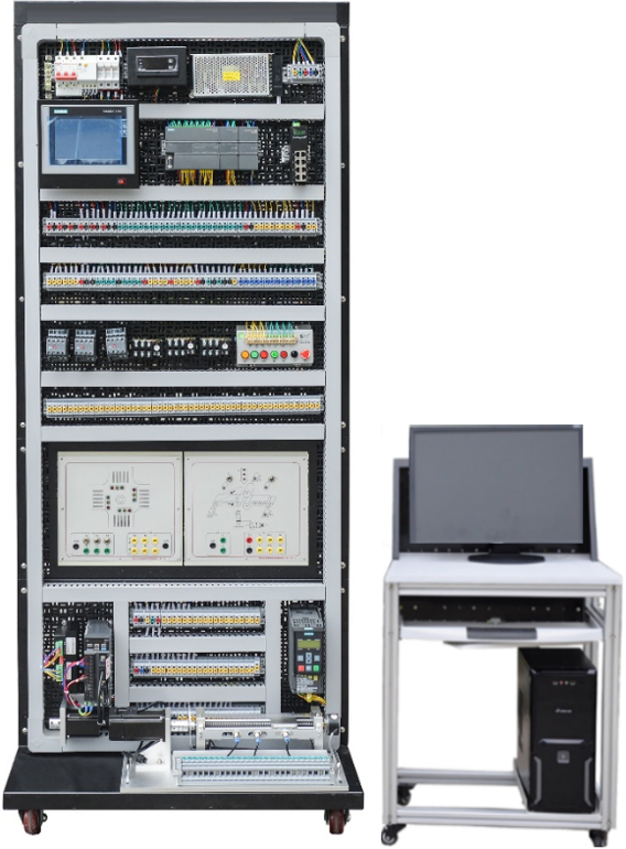 组成:伺服系统、步进系统、变频系统、小车运动模块、三相异步电动机模块;