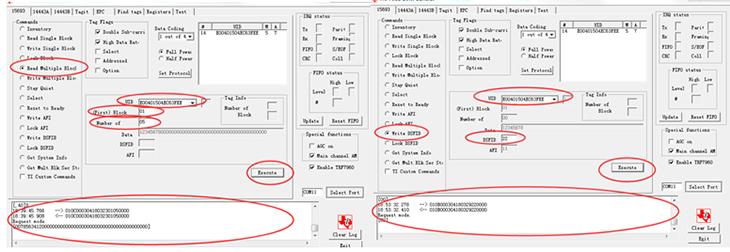 寻找单张、多张标签及标签总量 读写单个块操作 锁定标签块操作 读写多个块数据 设置标签进入静默状态 设置标签处于被选择状态 复位标签进入准备状态 向标签写应用标志位 锁定应用标志位 写数据存储格式标志位 锁定数据存储格式ID标志位 获取标签信息 获取多个块安全状态 |