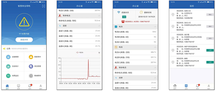温度:50-120度、漏电报警:50-1000MA连续可调、漏电报警通道:1路、温度报警:4路、电流检测通道:1路、电压检测通道:3路、报警方式:APP远程报警