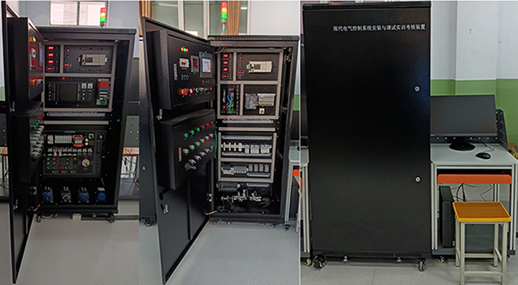 现代电气控制系统安装与调试实训室设备,实训项目技术内容涉及高职电力系统自动化技术专业所规定的教学内容。包括电工技术、电气测量技术、电气控制技术、电气工程制图、电机驱动与调速、可编程控制器应用技术、触摸屏组态控制技术、工业网络技术、传感器技术等方面的知识和技能要求。现代电气控制系统安装与调试实训考核装置承担《电工基础》《电子技术》《PLC电气控制技术》《组态软件技术》等课程相关的教学任务。