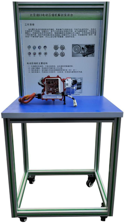 电动车压缩机结构解剖实训台选用主流纯电动车配套电动车压缩机;通过解剖,展示现电动车压缩机内部结构和控制原理。