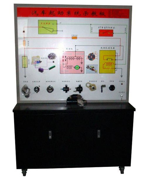 产品选用汽车起动系统实物,展示汽车起动系统的结构与原理;示教板上部还对起动机进行解剖,了解起动机的基本构造,面板上绘有完整的起动系统的电路图,设置检测端子,可通过仪器仪表检测各种信号参数如电压、电阻、频率等。本示教板功能齐全、操作方便、安全可靠。