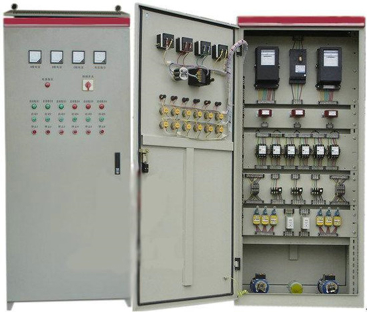 该设备按照标准电气控制柜设计制造(规格:800×460×1850mm),利用双面空间位置,柜内装有完成各种照明电路所需的单相电度表、日光灯、白炽灯、单联开关、感应开关、声控开关、触摸开关、插座等,以及电气控制所需要的多种低压电器,如漏电断路器、熔断器、电流互感器、接触器、中间继电器、时间继电器、热继电器、行程开关、按钮、信号灯、转换开关、电压表、电流表以及三相四线有功电度表等。为了延长电器的使用寿命,降低材料消耗,各电器的接点都已与接线端子相连,学生只需在接线端子上接线训练,以求电气元件经久耐用。技训柜还配备多台附属电机,通过该电动机支持可作各种实验。