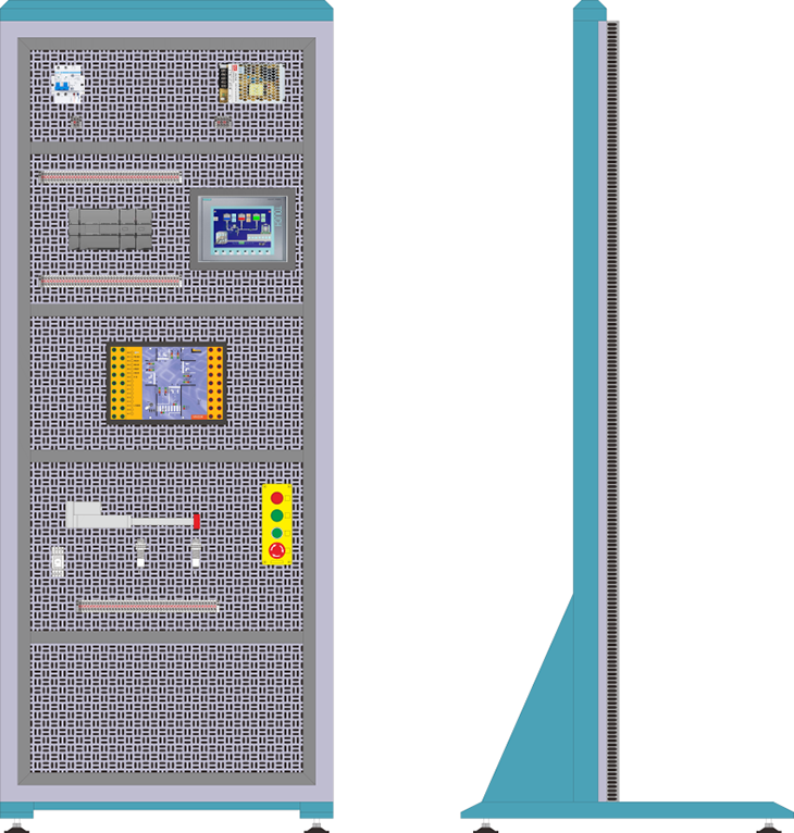 配套教学使用的对象,三层电梯、自动售货机、机械手、自动门、天塔之光、全自动洗衣机、自动成型机、红绿灯、装配流水线、四路抢答器、音乐喷泉、轧钢机、邮件分拣、物料分拣、多级传输带等模拟控制实训,指示灯采用贴片双色LED,面板采用3D立体彩色搭配设计,使模拟对象更直观立体,开关采用自复位兼自锁一体设计使实训能灵活实用,为适用各类PLC模块具有输入信号高低电平切换功能。