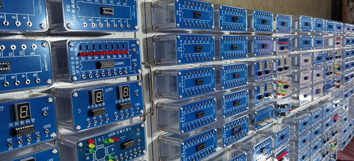 电工电子创新实训模块为磁吸式透明有机塑料封闭盒及PCB面板构成,且包括多个组合模块,为学生提供了一个进行综合应用、创新实训,可充分发挥学生潜能的完全开放的平台。