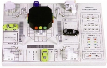 十字路口交通灯,按照一定比例缩小后,精心开发研制生产的仿实物模型。该实训模型具有指示和控制、启/停按钮、手/自动按钮、行人呼叫按钮、四方向红/黄/绿灯指示模块、四方向数码倒计时显示模块、车辆通行声光指示(不同方向的车辆通行时可以采用不同的声音及不同的指示灯进行指示)等功能。实训操作灵活方便,能满足大中专院校对可编程控制器技术的教学、课程设计和毕业设计要求。
