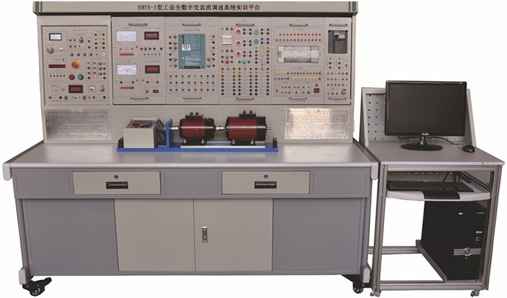 "全数字交流调速系统实验装置"主要训练和考核学员对交流变频器的参数设置和系统应用能力,通过对交流变频器控制电路和所控制电机负载的精心设计,使学员通过实训掌握交流电动机变频控制各种典型的工作状态;该设备包含了基于PLC及变频器、触摸屏的综合应用电路。由可编程控制器、模拟量模块、编码器、七寸彩色触摸屏、变频器、控制软件、交流接触器、按钮、指示灯等组成。该实训装置适用于自动化专业与机电一体化专业开设的《电力拖动自动控制系统》、《电机及拖动基础》、《工厂继电器接触控制》、《PLC原理及应用技术》、《变频调速技术》等课程的技能训练。