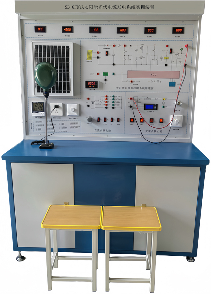 太阳能光伏电源发电系统实训装置、太阳能光伏发电实验实训装置、光伏发电实验室主要供电子科学与技术专业使用,光伏发电是利用半导体光生伏特效应转化成电能的一种发电技术,光伏发电实验室是通过模拟太阳光让太阳能电池板发电,通过此类试验让学生了解光伏发电的原理,对光伏发电效能进行研究和负载特性试验,提高学生的动手能力和实践能力。该实验室可完成太阳能电池板特性实验、太阳能自动跟踪实验、太阳能蓄电池控制器、太阳能应用实验、太阳能光伏逆变器实验、太阳能负载实验等多个实验项目。太阳能光伏发电实验实训装置学生可在实训室里完成光伏电缆制作、光伏电池方阵安装、光伏发电系统接线作业、光伏发电系统设计和安装、光伏发电系统测试和维护、课程设计、毕业设计等实验、实训。