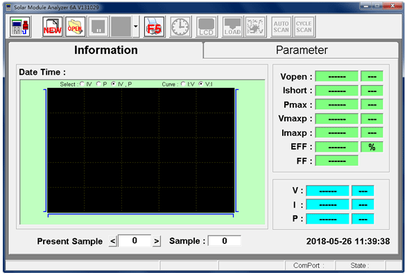 I-V特性曲线上形成一个合理的分布。测试仪可以实时给出被测组件的开路电压、短路电流、最佳工作点、填充因子以及光强的测试数据。