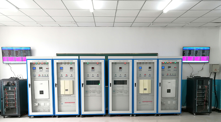 5KW太阳能电池组件采用标准钢结构件固定在C型专制钢件上,呈40度正面朝向正南方,整体支架系统放置在地面或者屋顶;经电缆输送至室内实验设备,可实现分布式屋顶发电相关实验,所发电能与风力发电相结合,经DC-AC逆变成正弦波220V交流电,多余电能经储能逆变器送入电网。