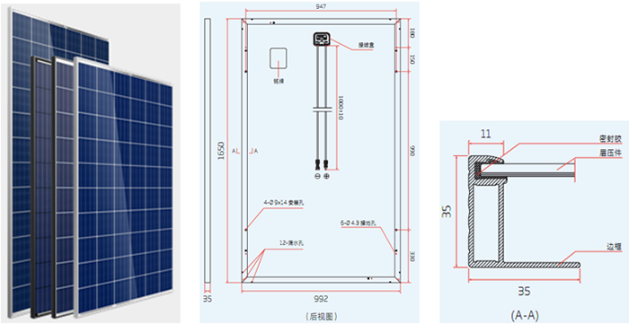 太阳能电池组为多晶硅或单晶硅,是由高效晶体硅太阳能电池片、超白布纹钢化玻璃、EVA、透明TPT背板以及铝合金边框组成。
