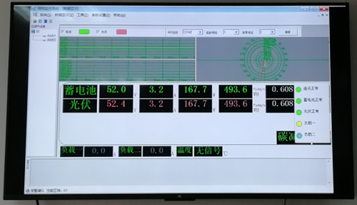 在天气晴朗的白天,系统运行在微网模式并在补充储能电池容量的同时将多余电量通过逆变系统送入电网,到夜间再将储能电池电能通过储能逆变器送入电网以弥补由于夜间网端负荷过大造成的电网电压过低,在储能电池不够用时,系统将转入正常模式,一边自行弥补储能电池的亏空,一边通过系统向负载供电。