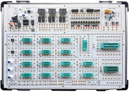数字电子技术实验箱由铝木合金箱体、开关电源、常用信号源和实验电路区组成。其中实验电路区采用全开放模式,可根据需求灵活配置实验电路,以满足不同层次学生的教学实验要求。